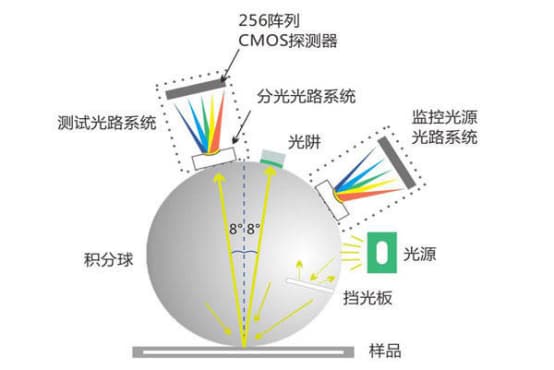 積分球是一個容器,用來吸收反射光線。當反射光線穿過積分球時,它會被吸收并傳遞到儀器內部的光學元件上。這些元件將光信號轉化為電信號,然后將它們輸出到顯示器上。通過測量電信號的大小,我們就能得到顏色的數值。